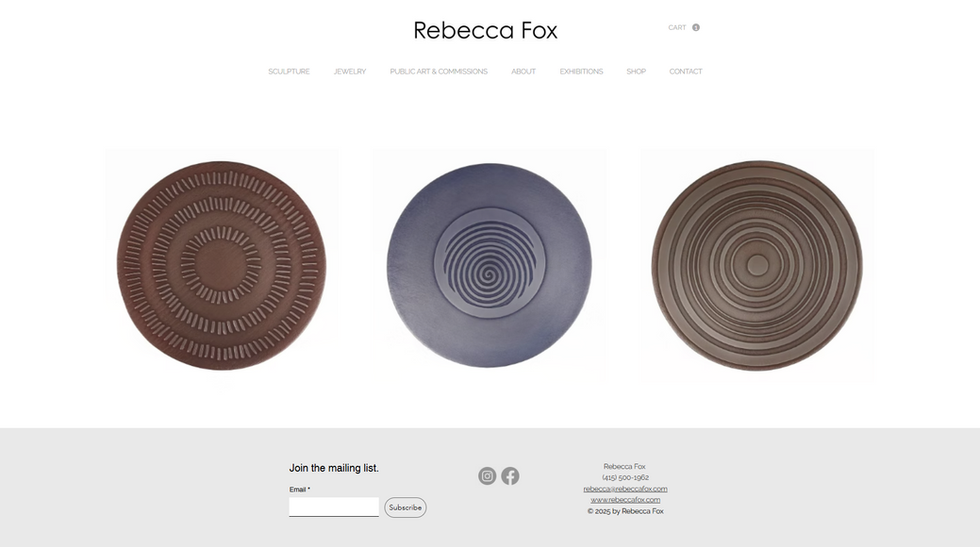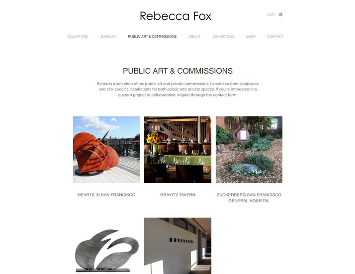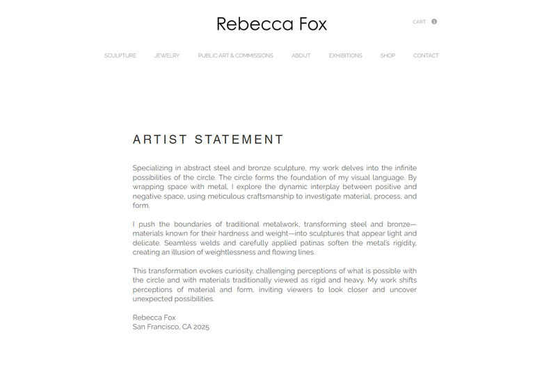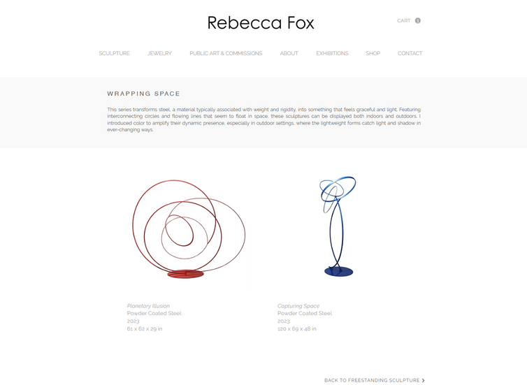Rebecca Fox is a sculptor whose work spans public art, geometric abstraction, and fine jewelry. For this project, I merged her former sculpture and jewelry websites into a unified platform — streamlining her digital presence while preserving the distinct voice of each practice.